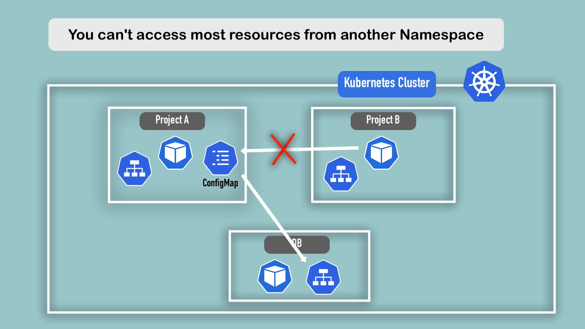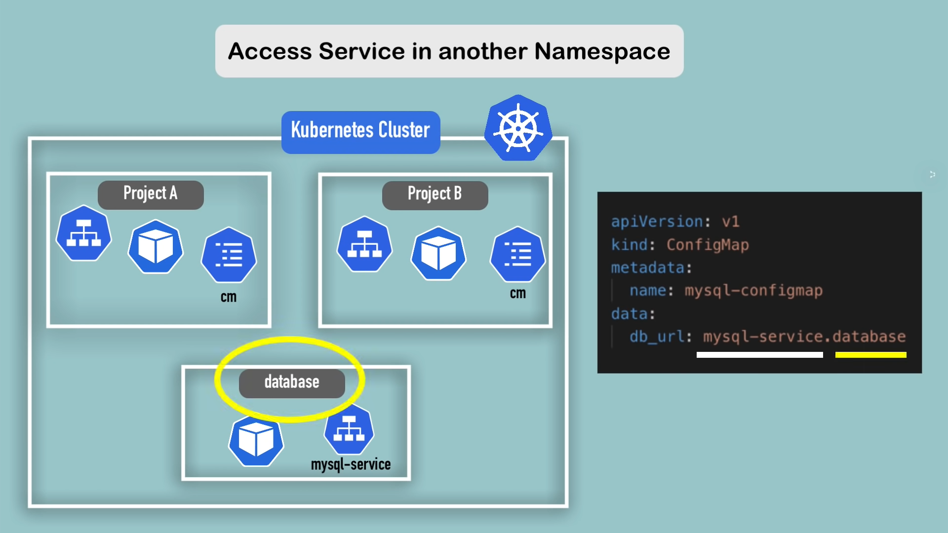 프로젝트 B 네임스페이스의 ConfigMap은 DB 네임스페이스의 database-service에 접근할 수 있다.