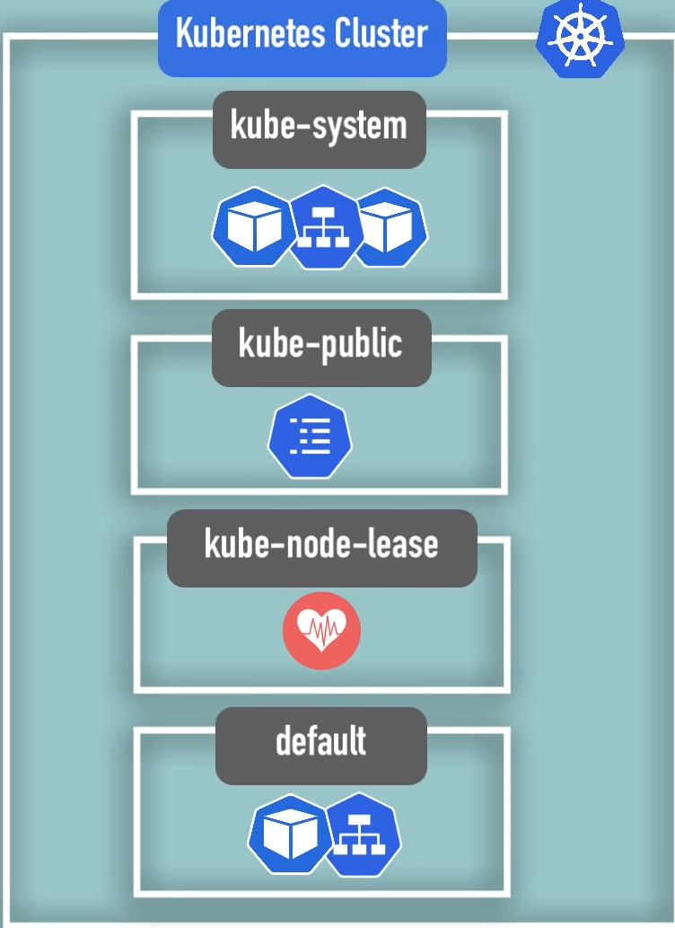 클러스터를 만들때, 쿠버네티스는 기본적인 4개의 네임스페이스를 제공한다.