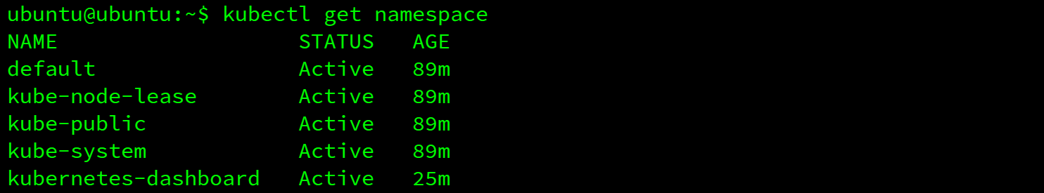 kubernetes-dashboard : minikube에만 기본적으로 생성되어있는 네임스페이스이다. 대시보드의 생성에 필요한 컴포넌트를 가지고 있다.