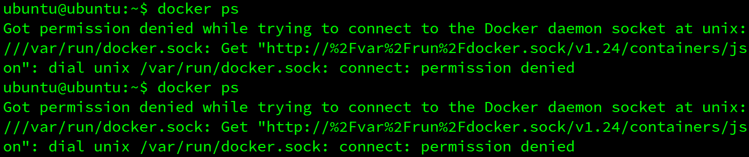 현재 사용자의 그룹에 docker가 포함되었다. 이제 docker ps 등의 명령어를 사용할 수 있다.