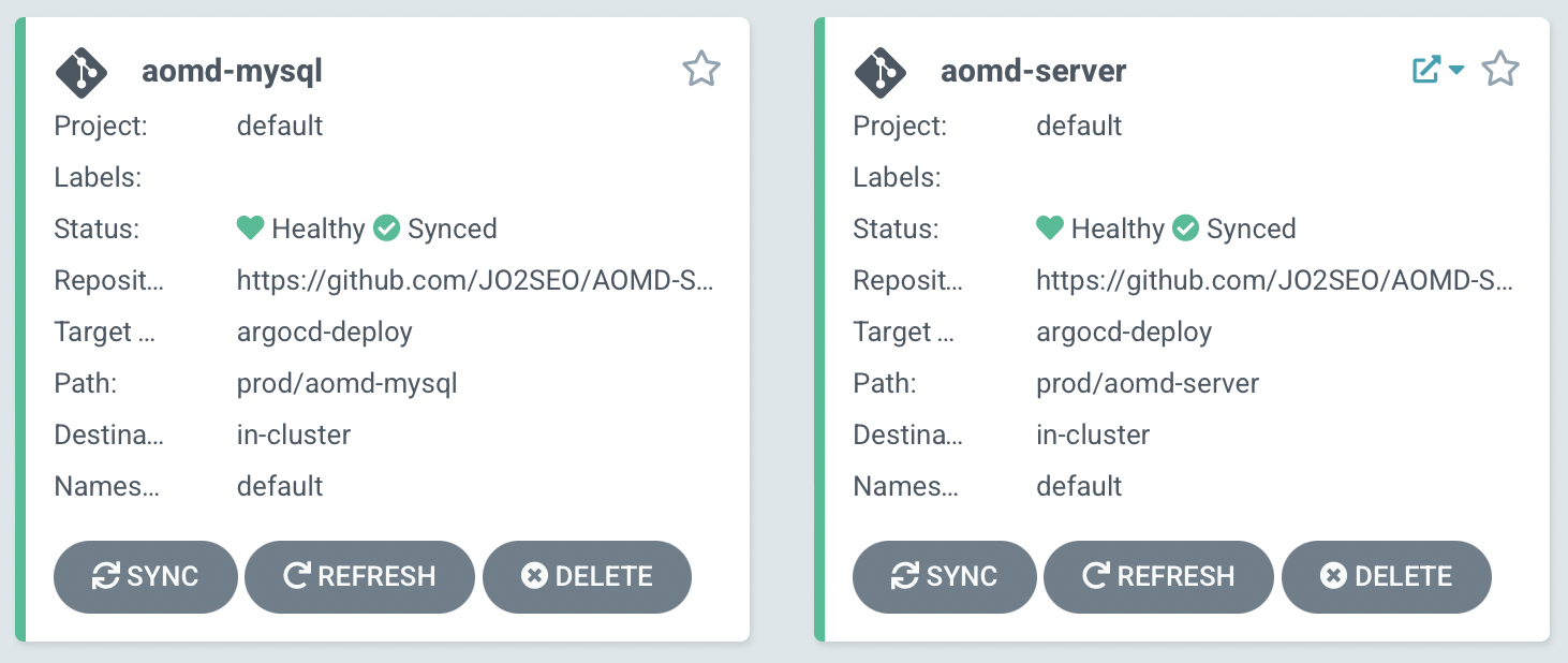 - GitOps 구현체인 ArgoCD는 argocd-deploy 브랜치의 server폴더를 바라보고 있다가 변화를 감지한다.
